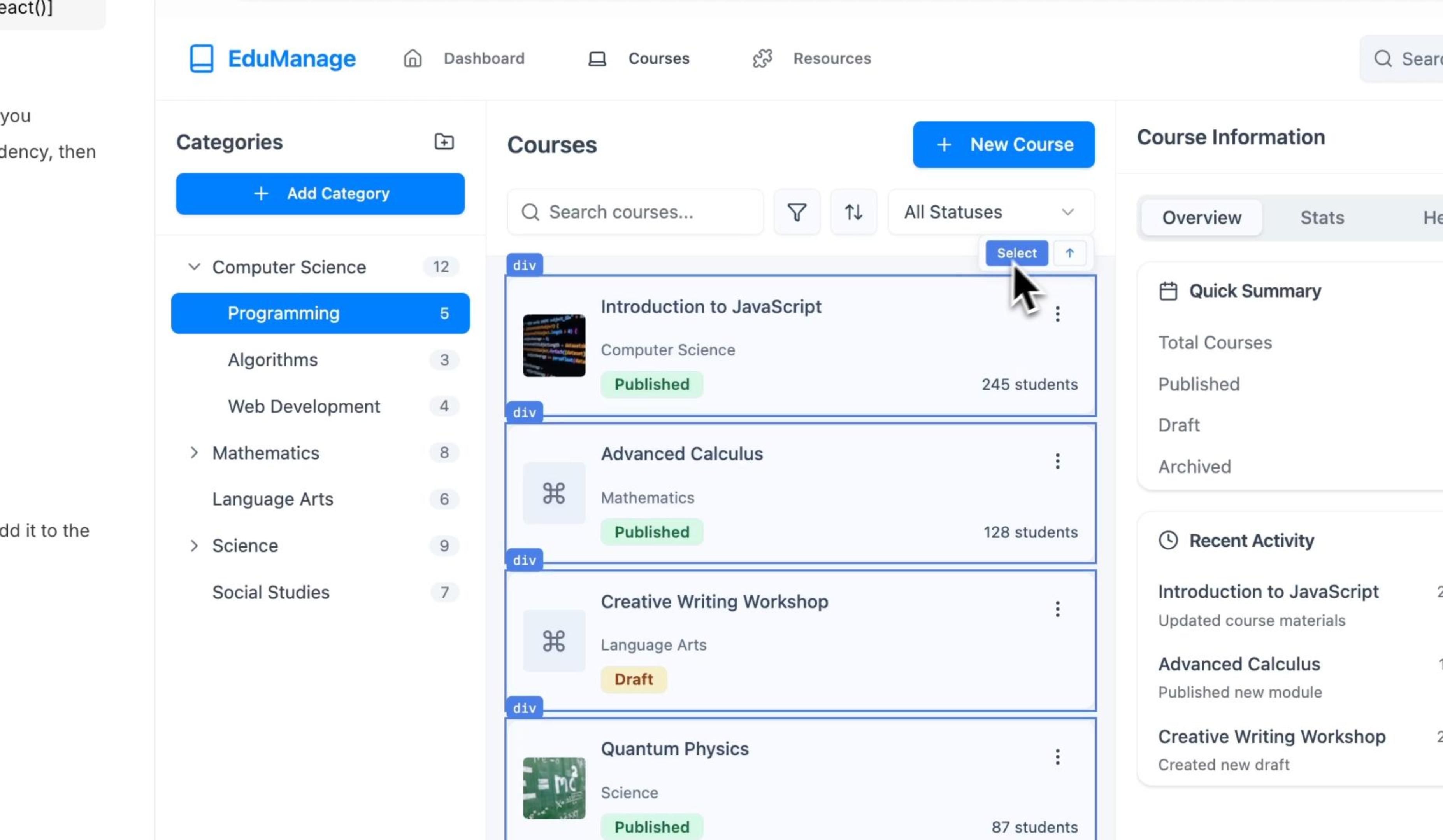 Playground stays alongside the chat, enabling an iterative process of searching and code updating. It will provide you with complete and self-contained code that's ready-to-use in your project.